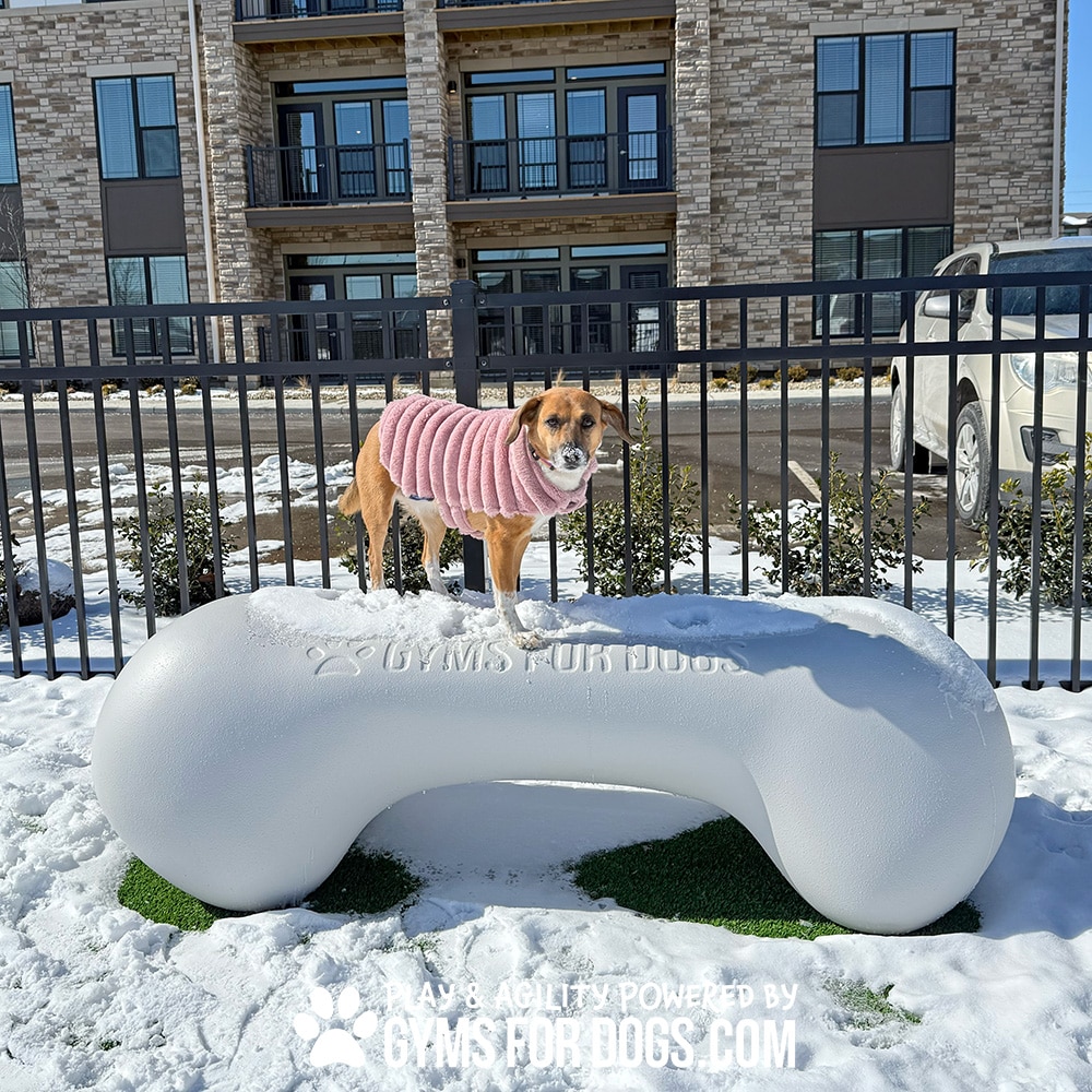 With its playful dog bone shape, this structure serves as both a fun agility piece for dogs and a comfortable resting spot for their owners. Whether used in dog parks, kennels, agility courses, or backyards, it adds a touch of whimsy and practicality to your space. The fiberglass material not only makes it lighter for easier installation but also highly resistant to wear, making it perfect for high-traffic areas where durability is key.