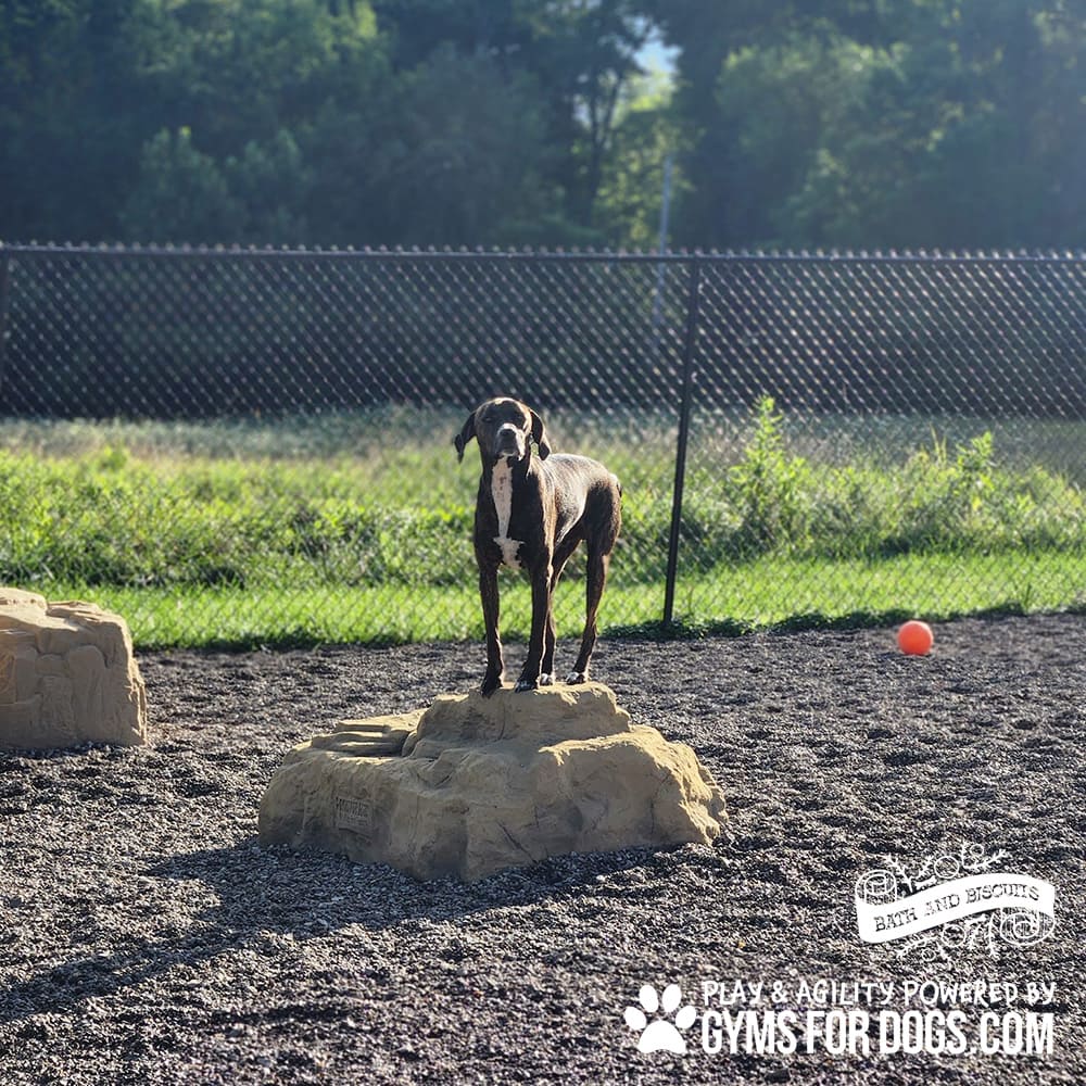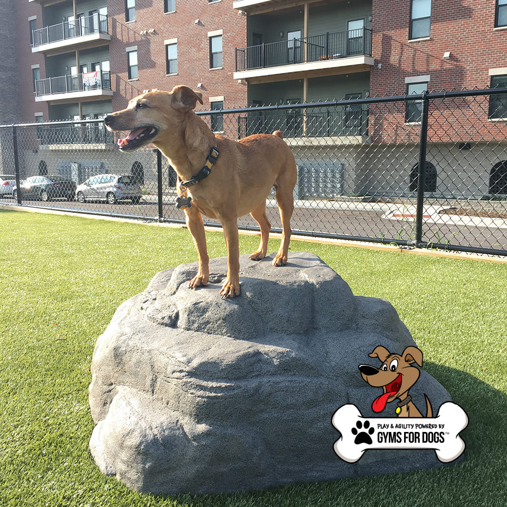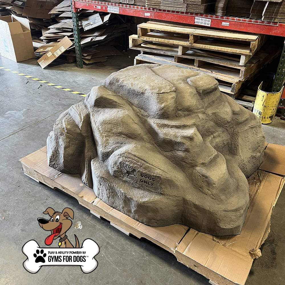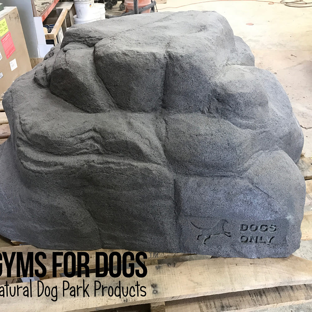 Climbing Boulders are perfect for dog parks. The boulders provide numerous natural climbing features for people and dogs of all ages. They are molded from real rock, hand-carved to simulate a real boulder, made of UV-resistant fiberglass, and come with a special anti-graffiti coating. Installation is as simple as placement on an existing slab or footing and bolting down.
